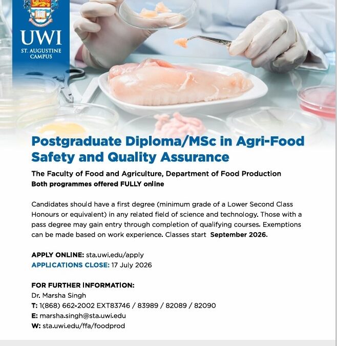 February 23, 2026Postgraduate Diploma/ MSc in Agri-Food Safety and Quality Assurance